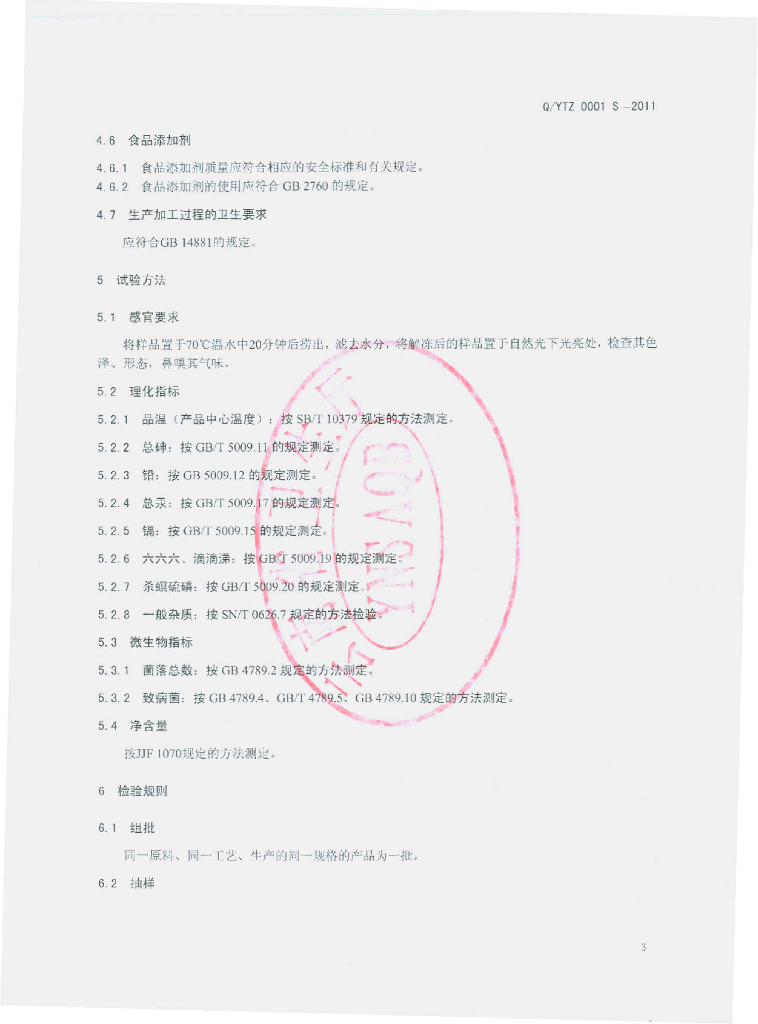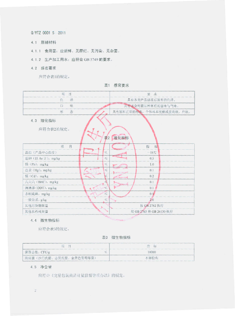 Q/YTZ 0001S-2011 速冻食用菌
