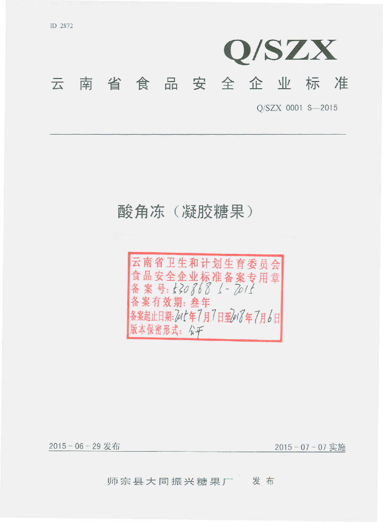 Q/SZX 0001S-2015 师宗县大同振兴糖果厂 酸角冻(凝胶糖果)