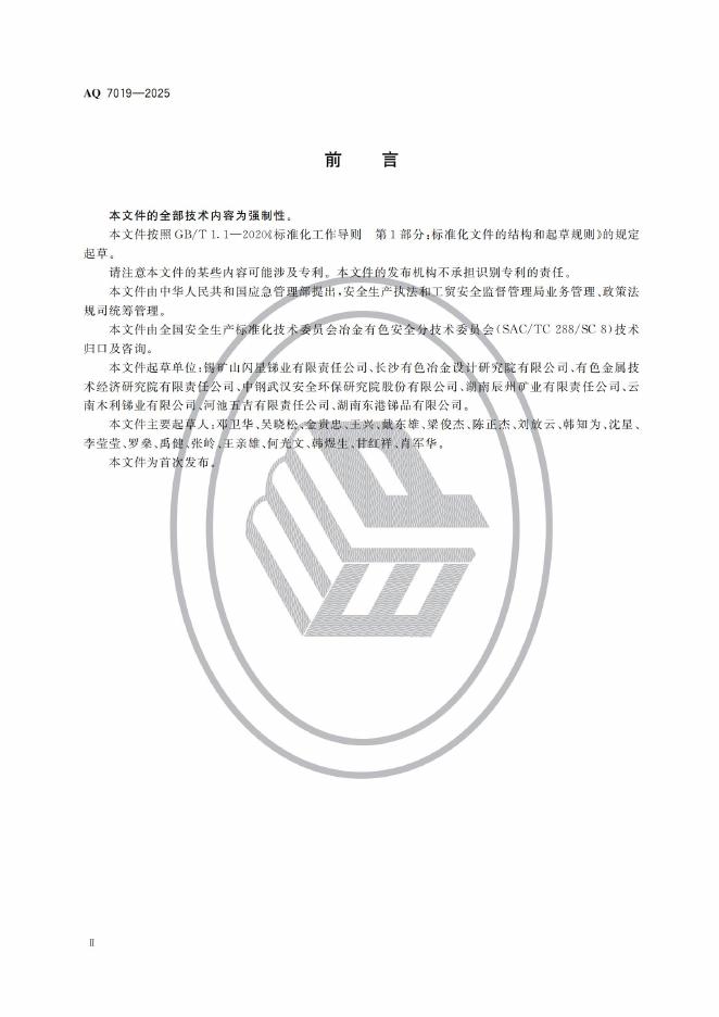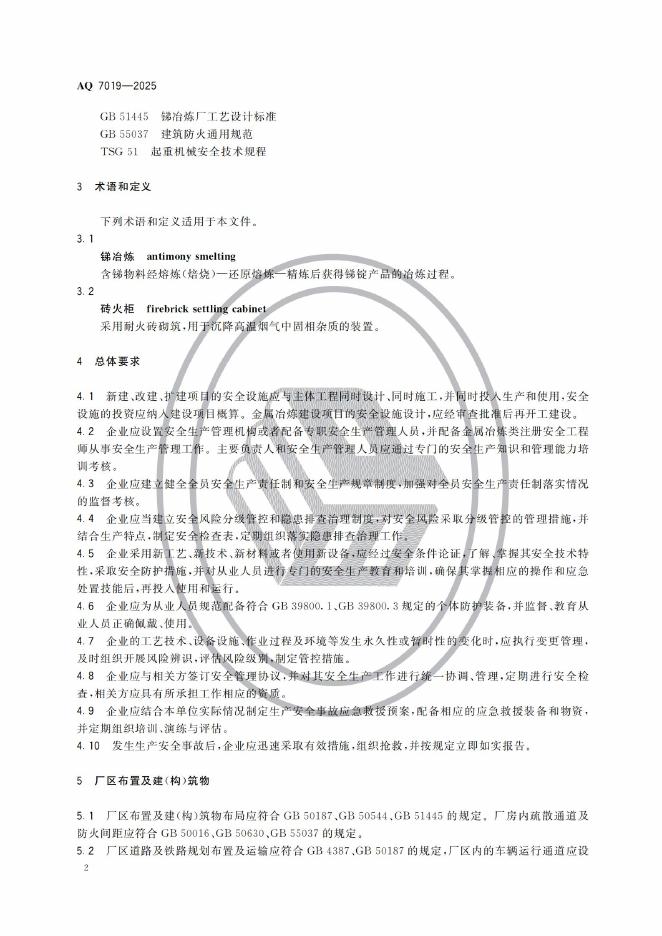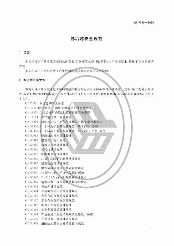AQ 7019-2025 锑冶炼安全规范
