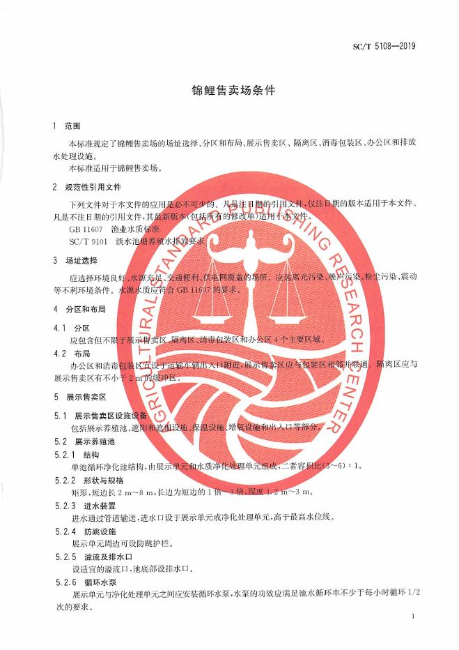 SC/T 5108-2019 锦鲤售卖场条件
