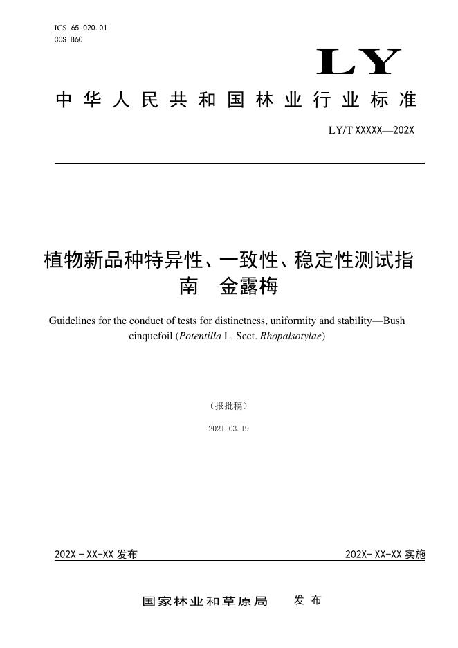 LY/T 3285-2021 植物新品种特异性、一致性、稳定性测试指南 金露梅