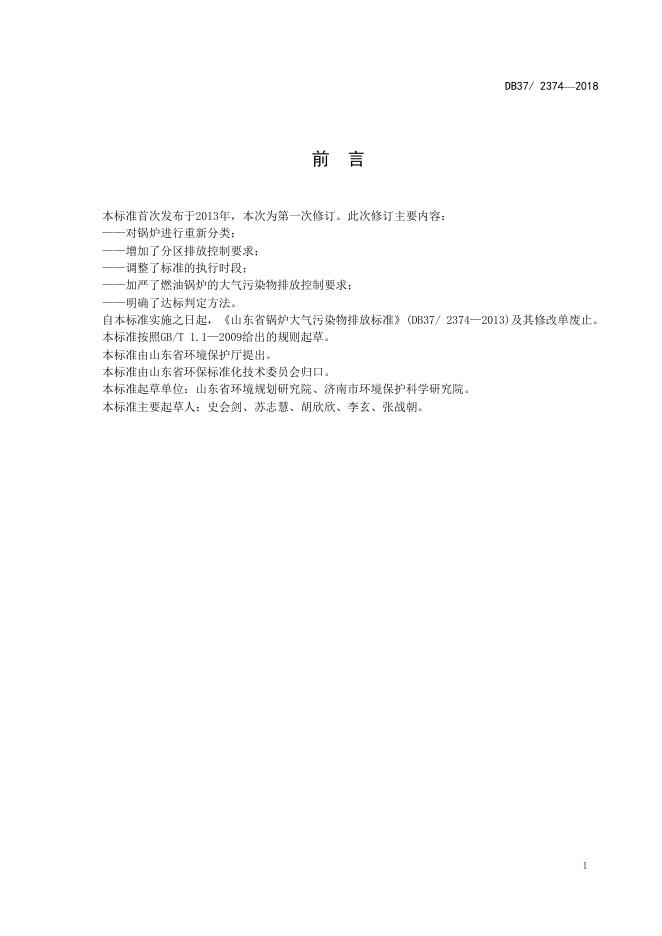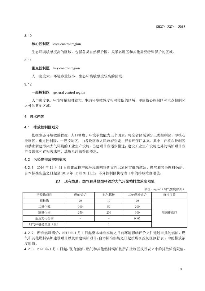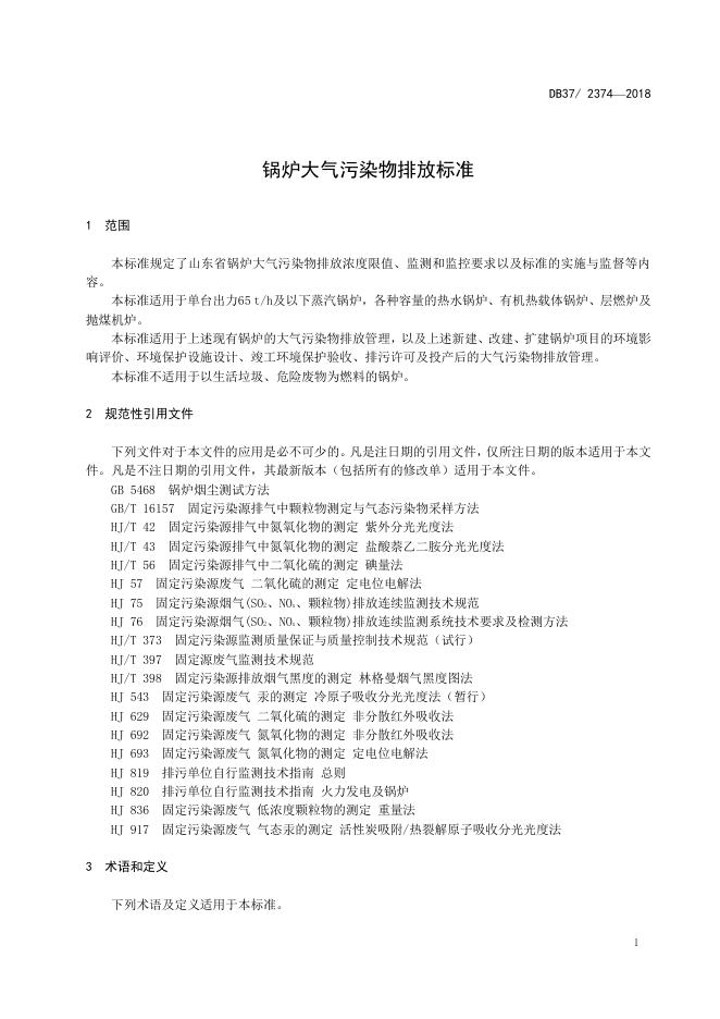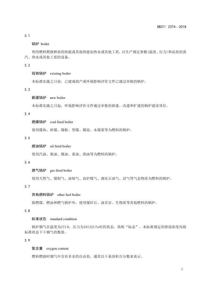 DB37/ 2374-2018 锅炉大气污染物排放标准