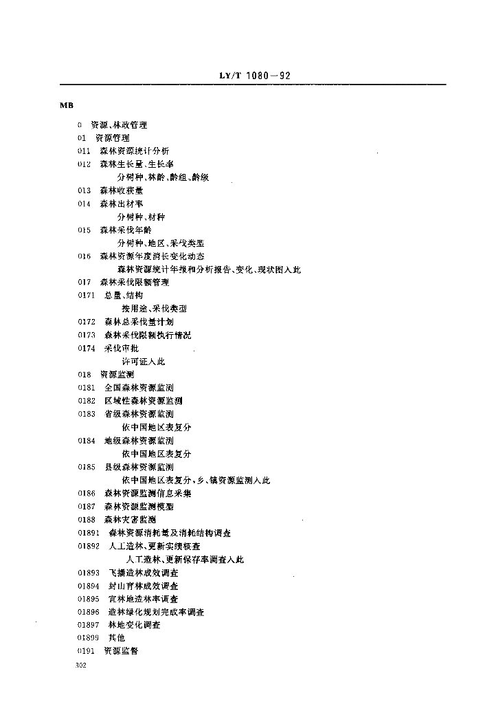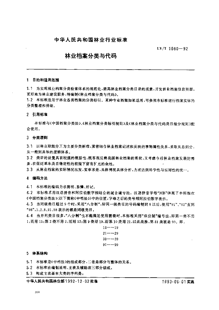 LY/T 1080-1992 林业档案分类与代码