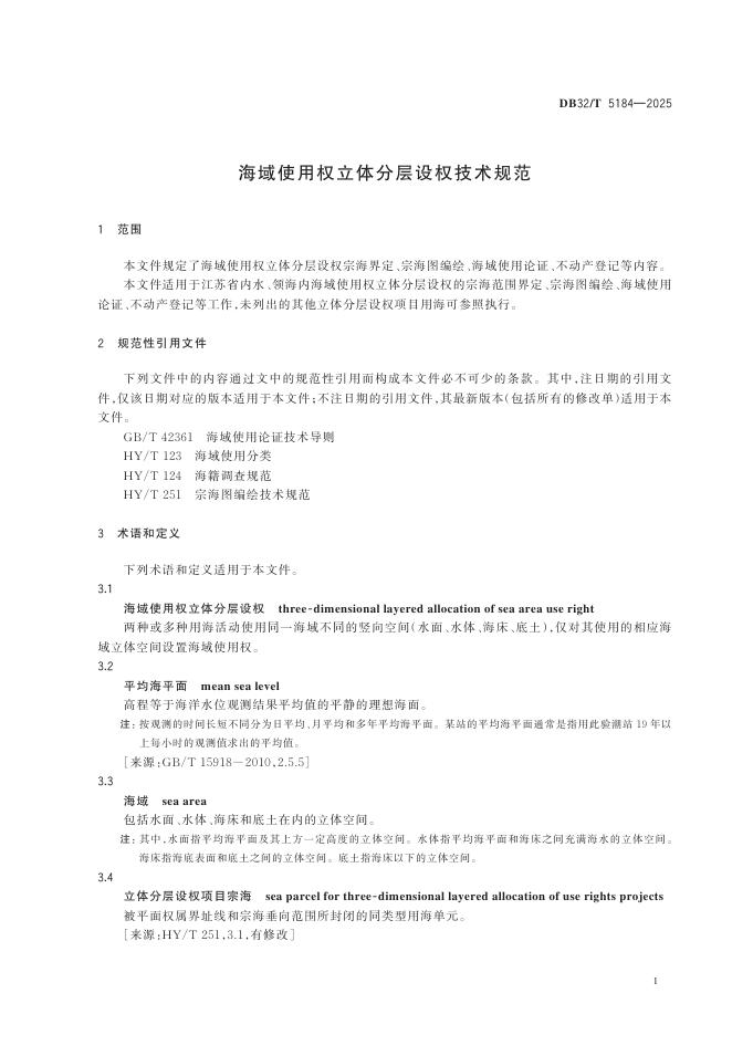 DB32/T 5184-2025 海域使用权立体分层设权技术规范