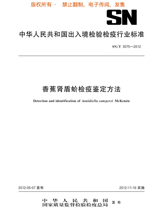 SN/T 3075-2012 香蕉肾盾蚧检疫鉴定方法