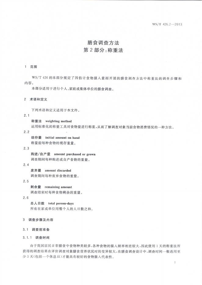 WS/T 426.2-2013 膳食调查方法 第2部分:称重法