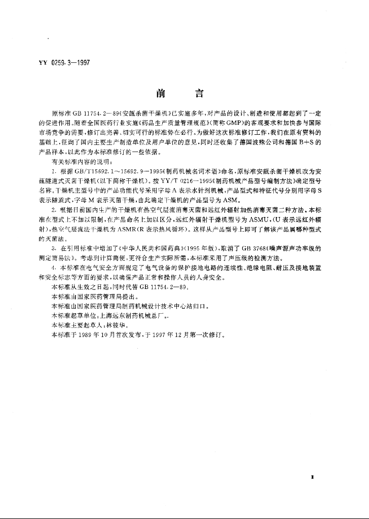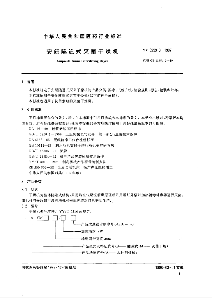 YY 0259.3-1997 安瓿隧道式灭菌干燥机
