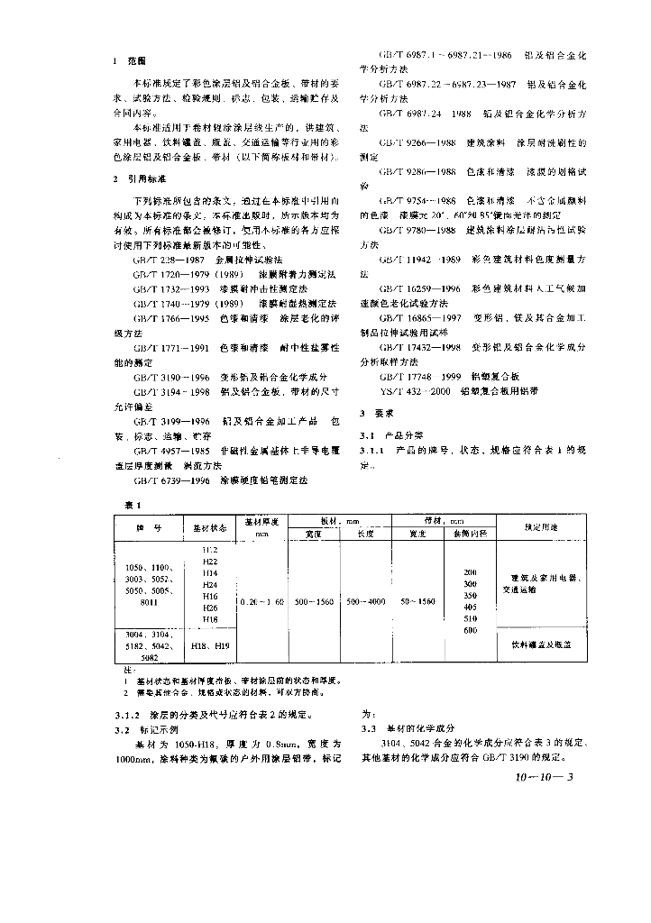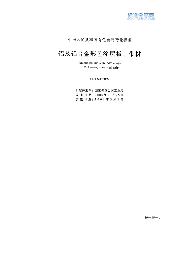 YS/T 431-2000 铝及铝合金彩色涂层板、带材