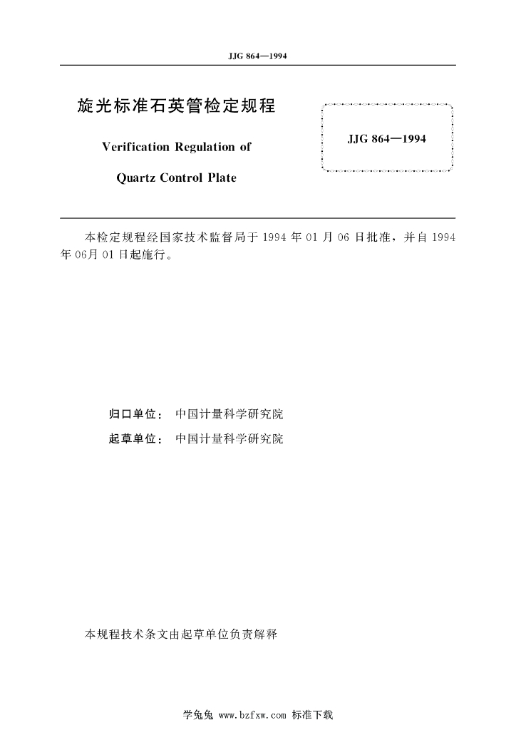 JJG 864-1994 旋光标准石英管