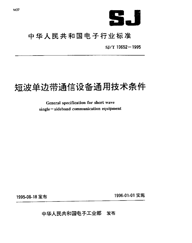 SJ/T 10652-1995 短波单边带通信设备通用技术条件