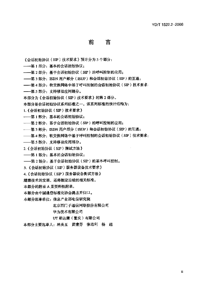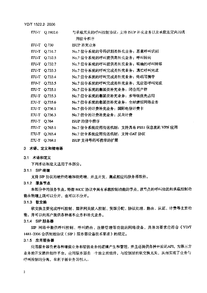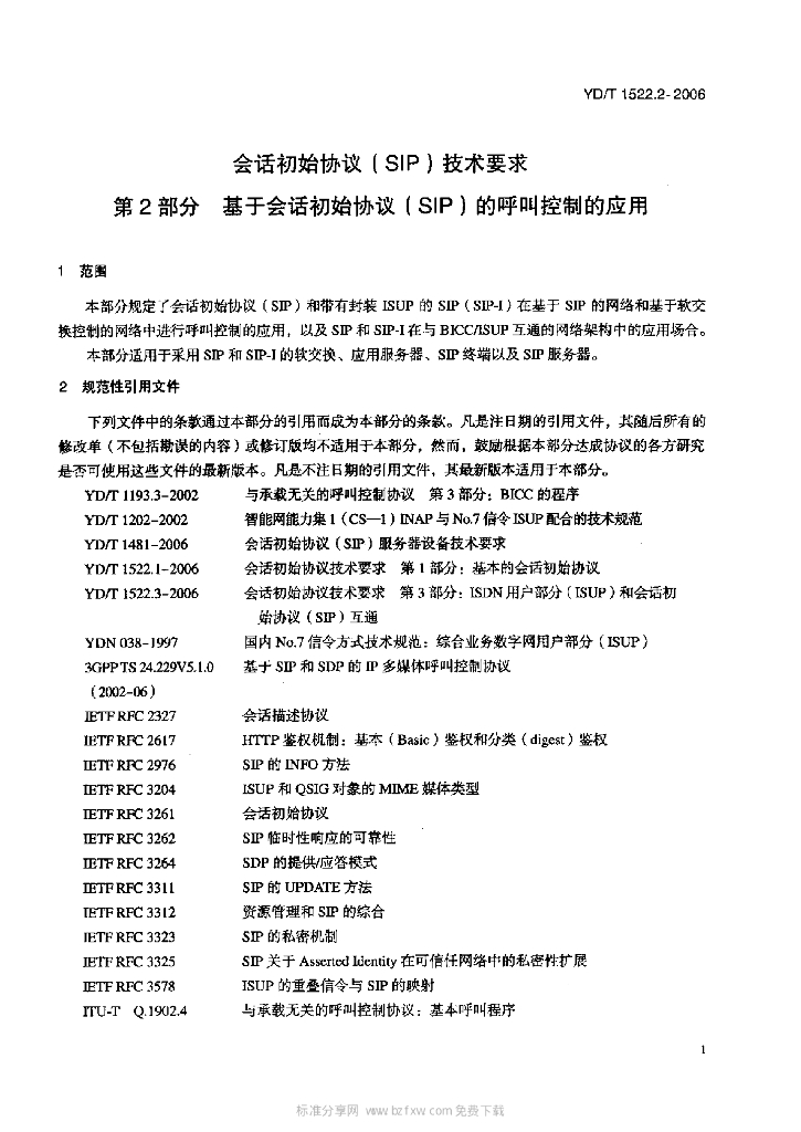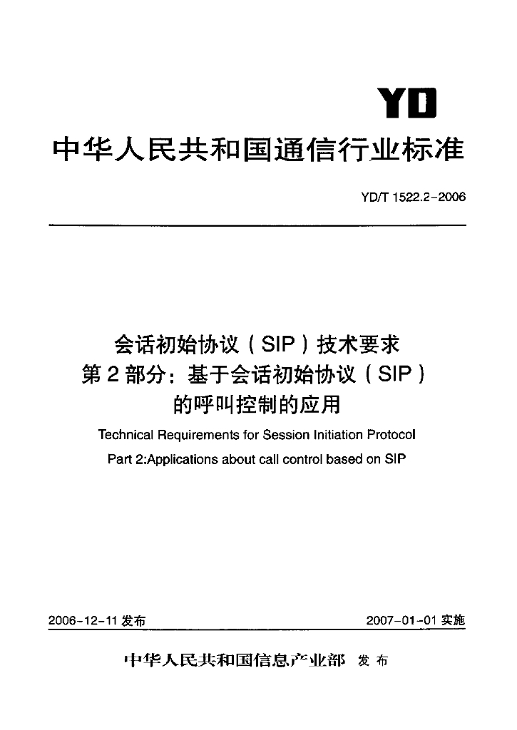 YD/T 1522.2-2006 会话初始协议(SIP)技术要求 第2部分:基于会话初始协议(SIP)的呼叫控制的应用