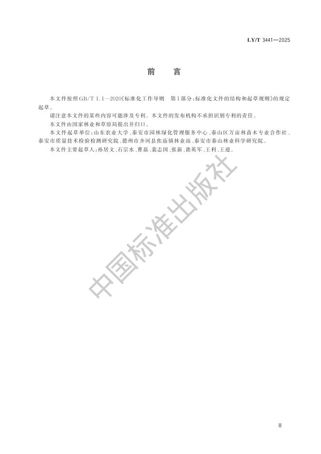 山东农业大学、泰安市园林绿化管理服务中心、泰山区万亩林苗木专业合作社、泰安市质量技术检验检测研究院、德州市齐河县焦庙镇林业站、泰安市泰山林业科学研究院