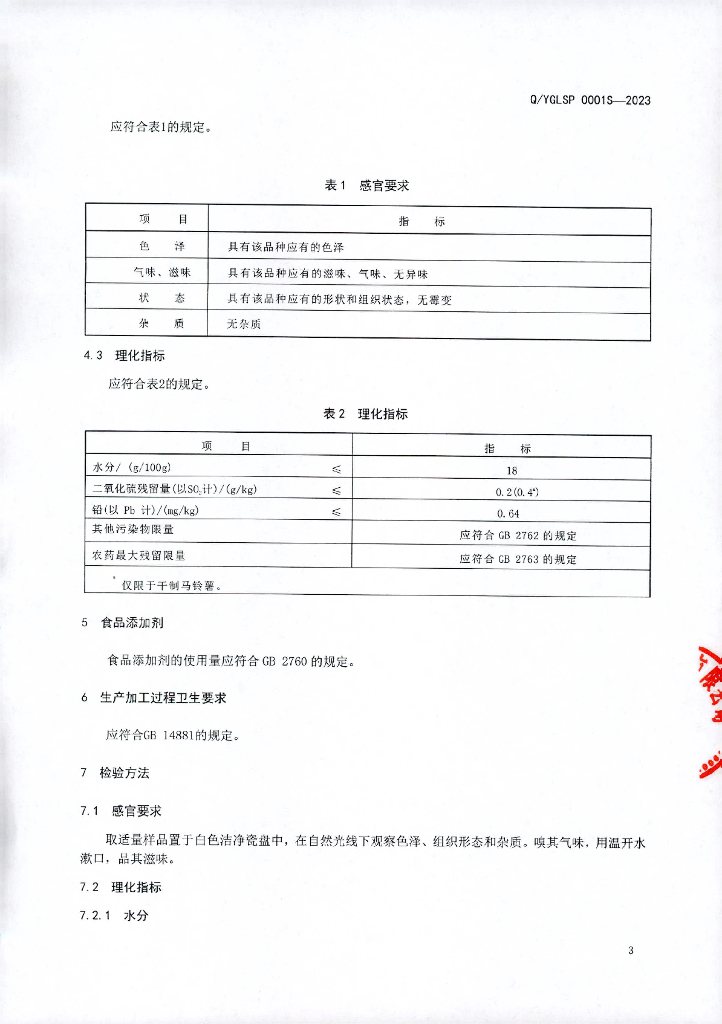 Q/YGLSP 0001S-2023 蔬菜干制品(非即食)