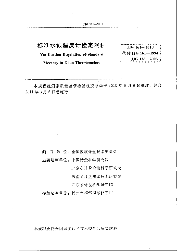 - 代替标准:JJG 161-1994、JJG 128-2003