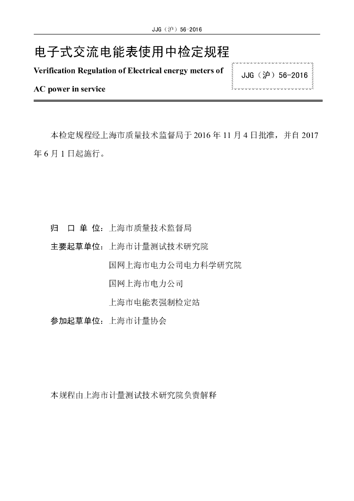 上海市计量测试技术研究院、国网上海市电力公司电力科学研究院、国网上海市电力公司、上海市电能表强制检定站、上海市计量协会