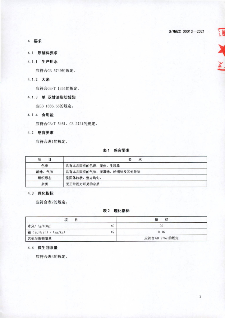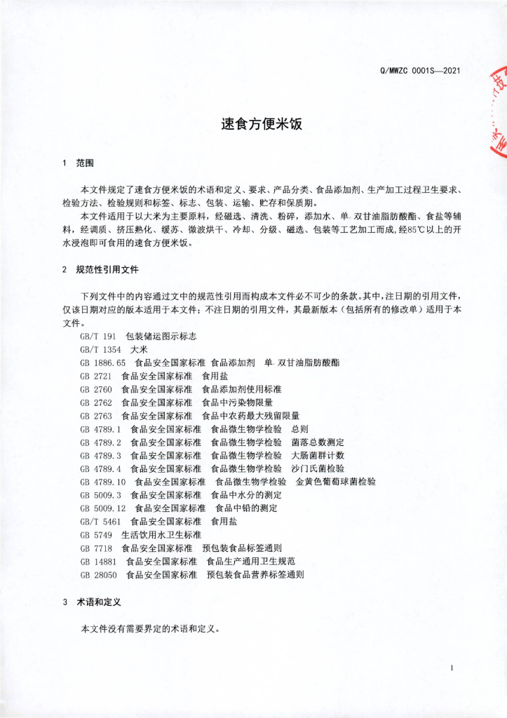 Q/MWZC 0001S-2021 速食方便米饭