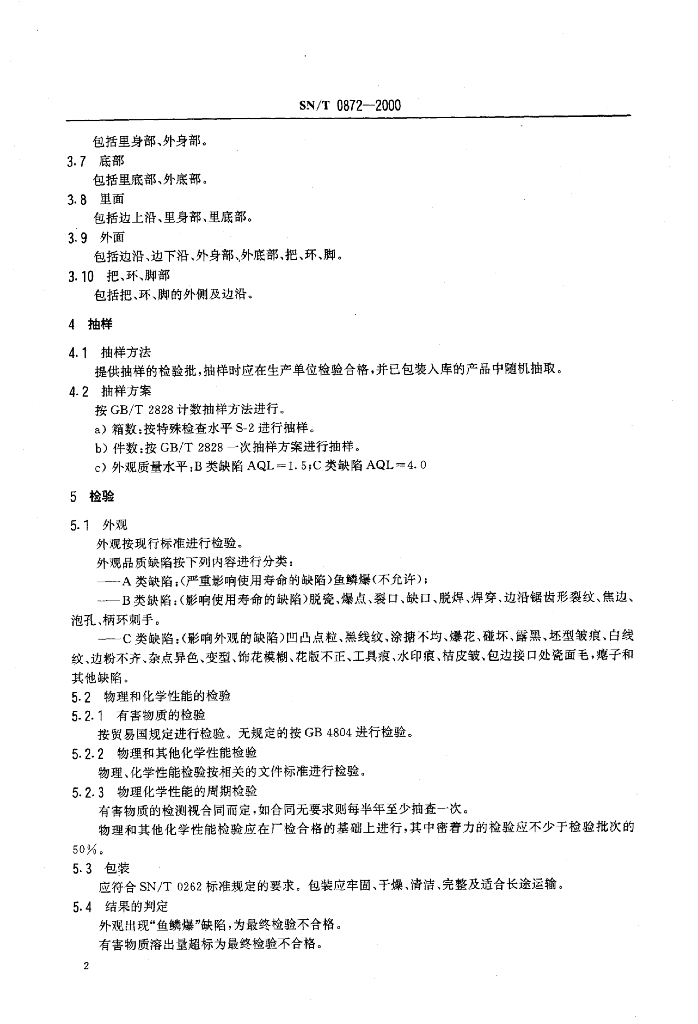 SN/T 0872-2000 进出日日用搪瓷制品检验规程