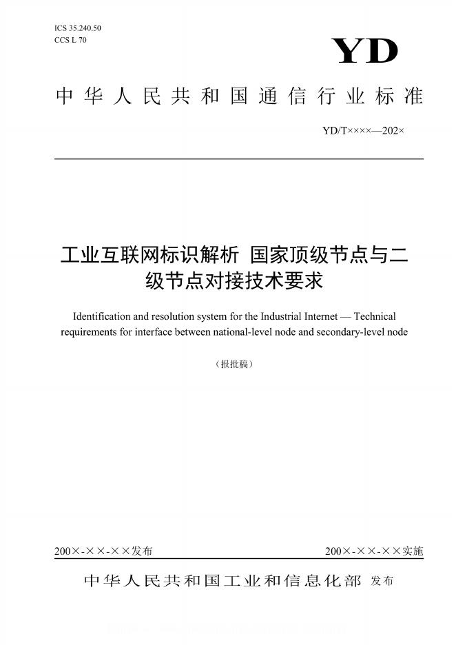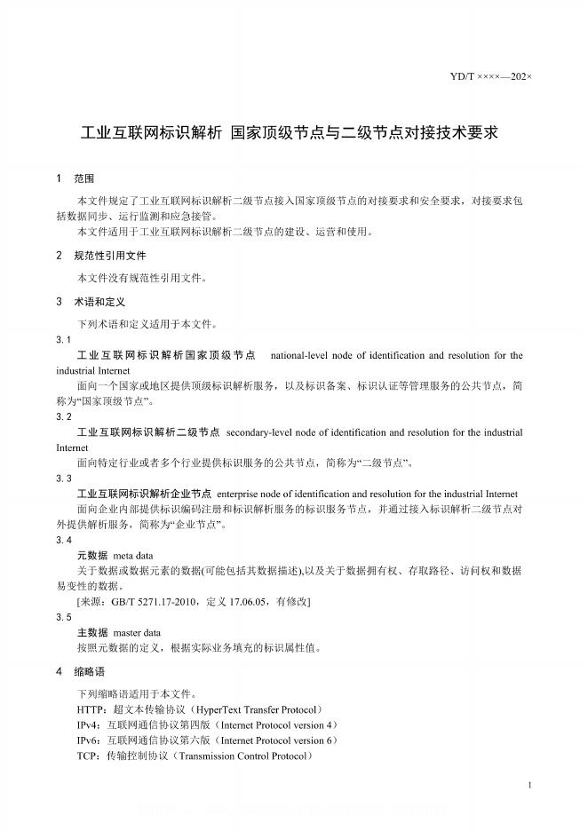 YD/T 6120-2024 工业互联网标识解析 国家顶级节点与二级节点对接技术要求