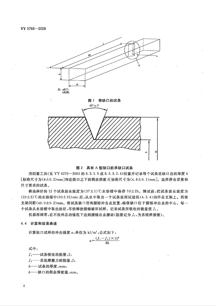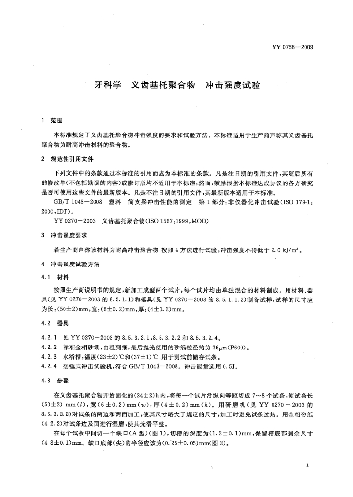 YY 0768-2009 牙科学义齿基托聚合物冲击强度试验