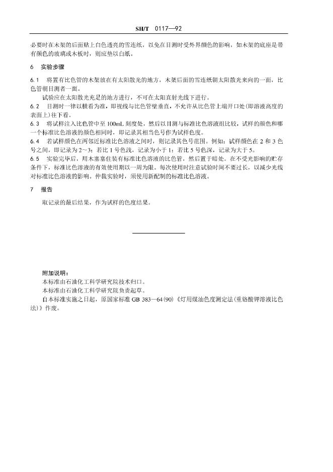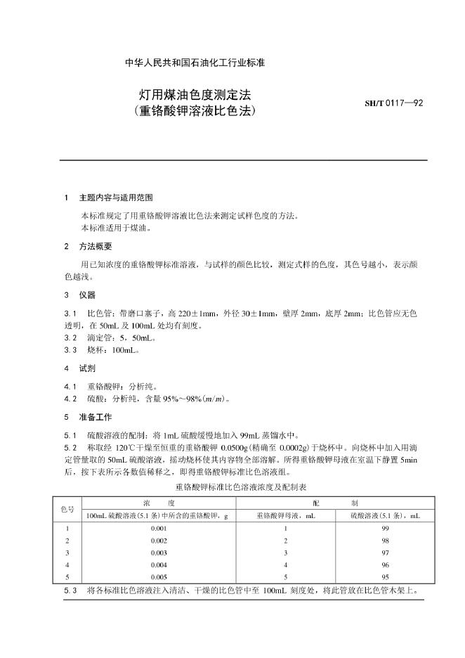 SH/T 0117-1992 灯用煤油色度测定法(重铬酸钾溶液比色法)