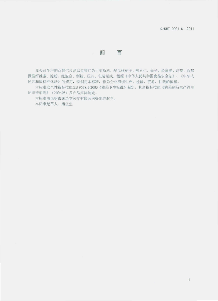 Q/KHT 0001S-2011 益智仁片