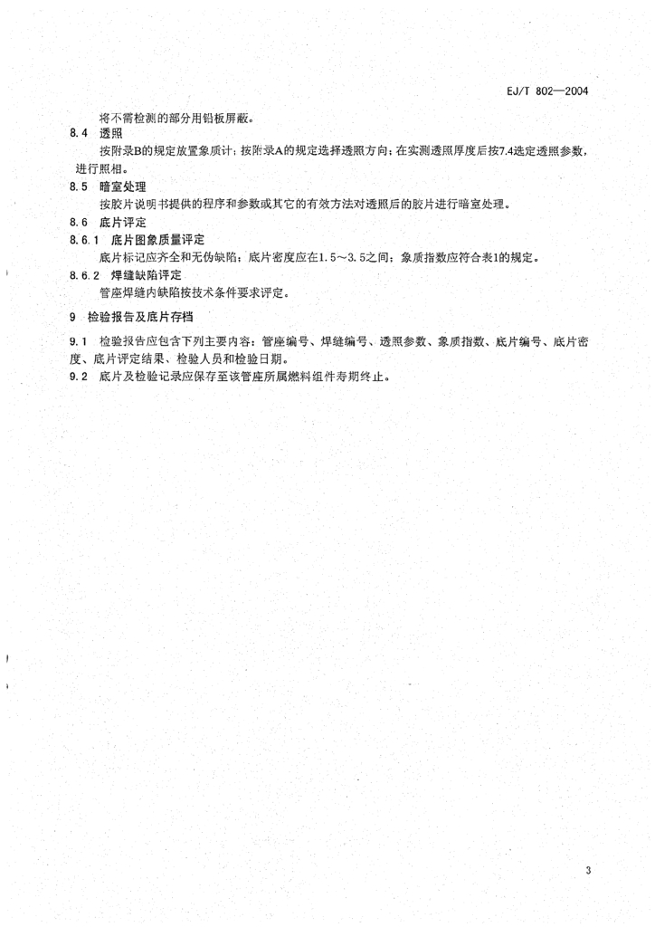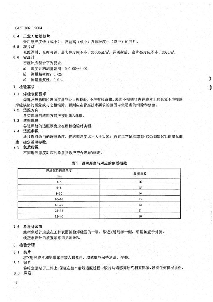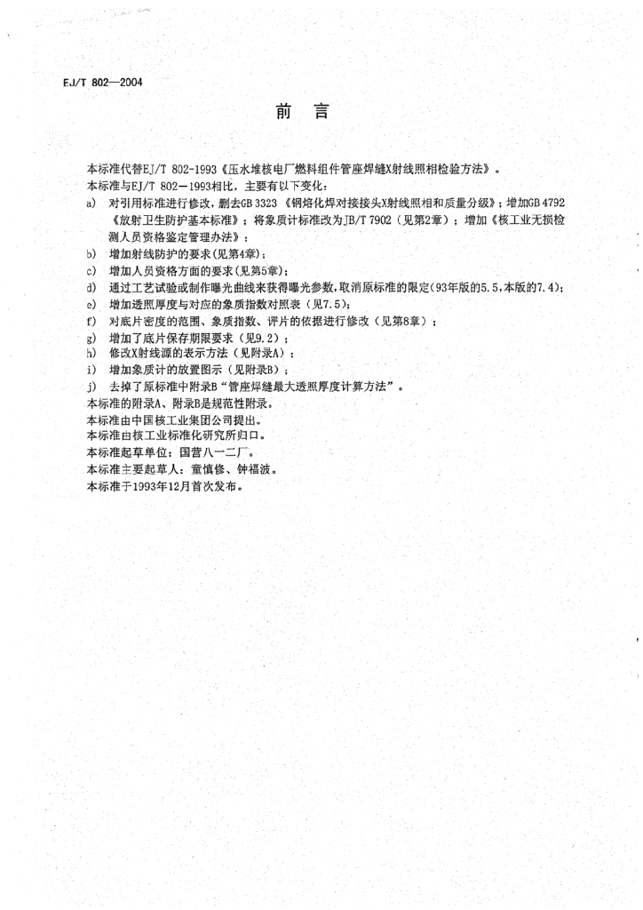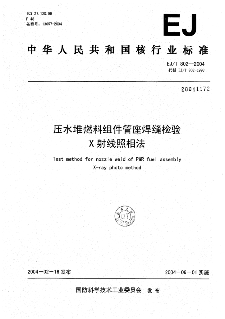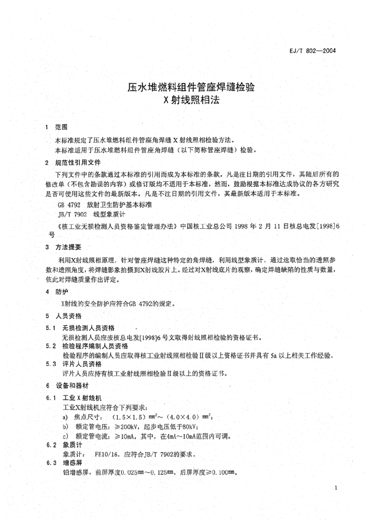 EJ/T 802-2004 压水堆燃料组件管座焊缝检验X射线照相法