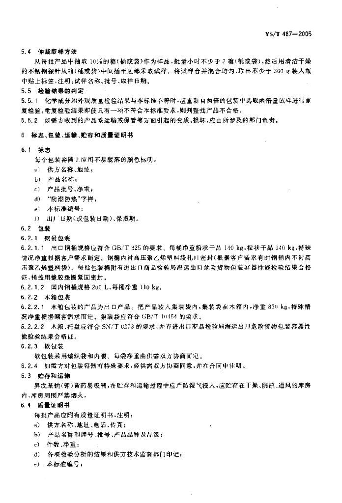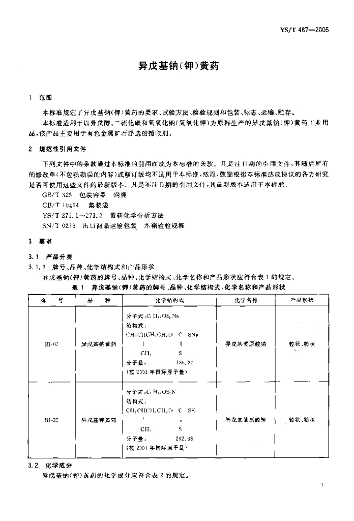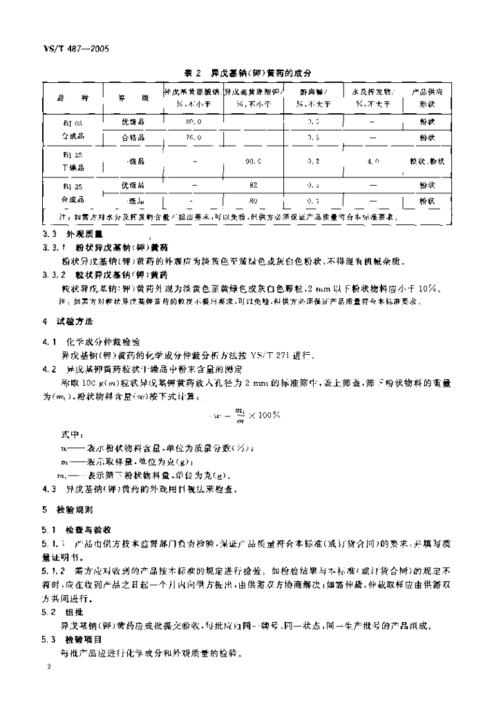 YS/T 487-2005 异戊基钠(钾)黄药