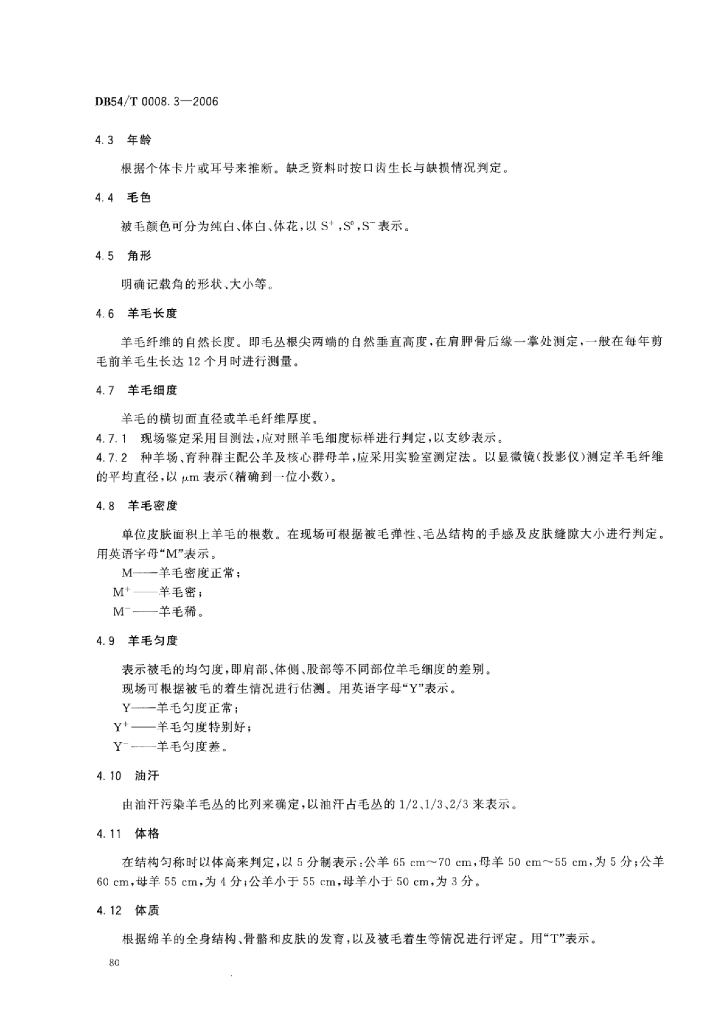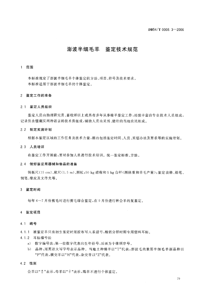DB54/T 0008.3-2006 澎波半细毛羊 鉴定技术规范