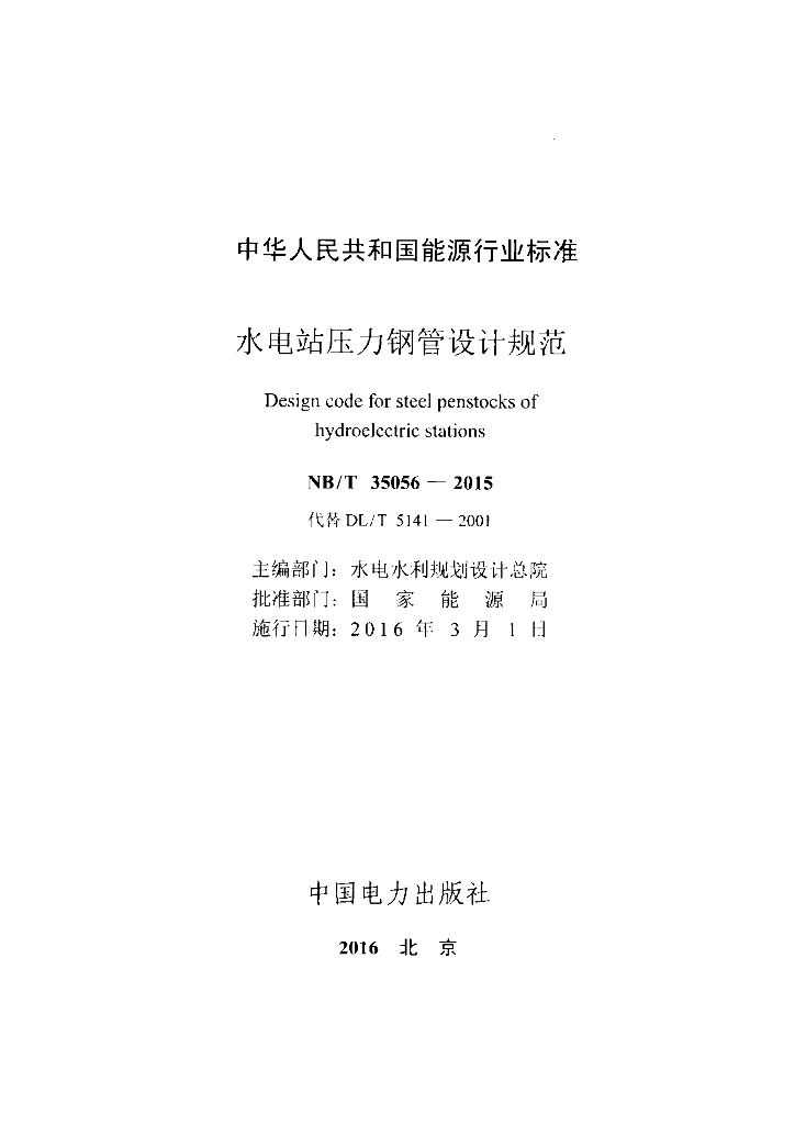 NB/T 35056-2015 水电站压力钢管设计规范(含2021年第1号修改单)