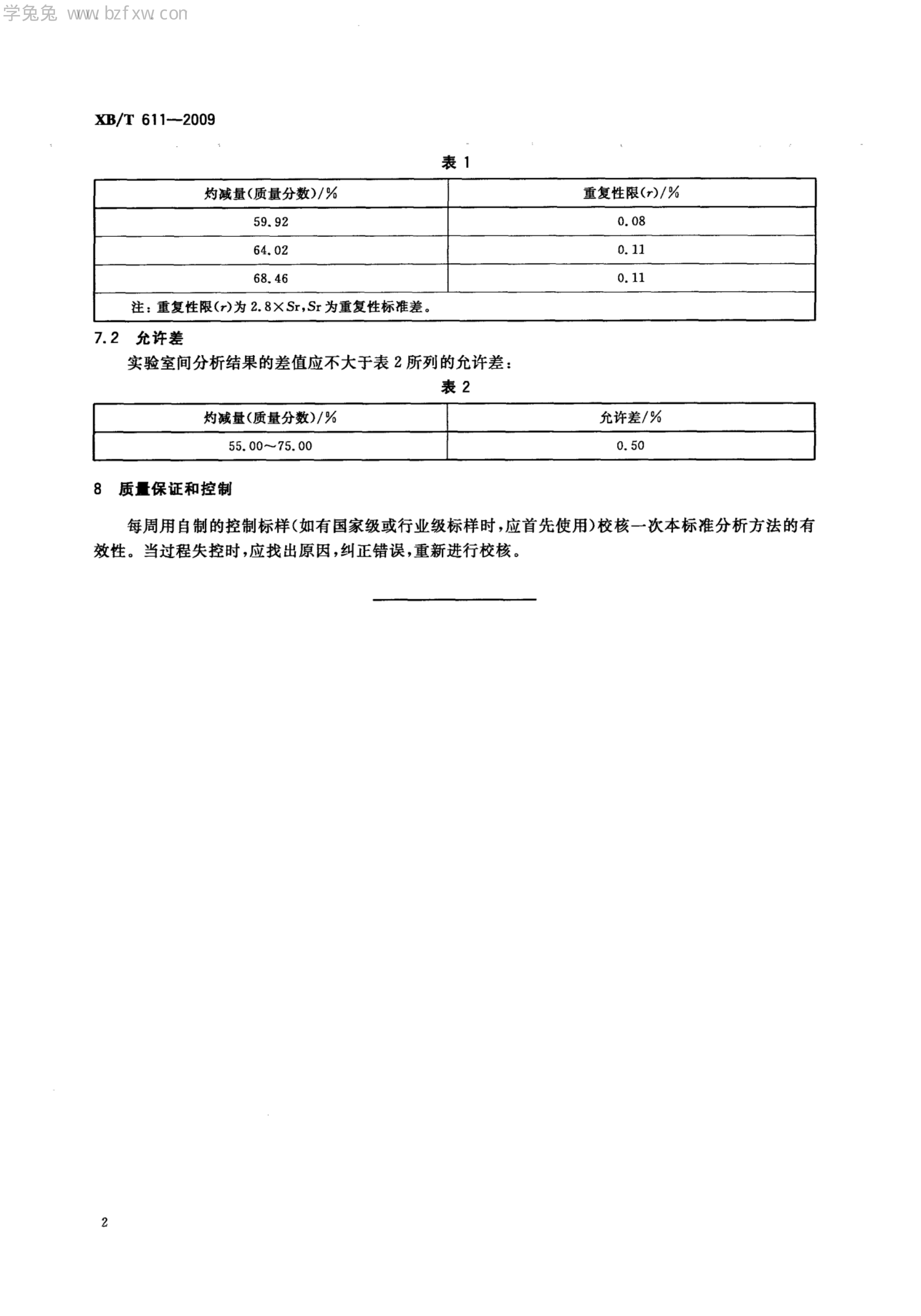XB/T 611-2009 草酸稀土化学分析方法 灼减量的测定 重量法