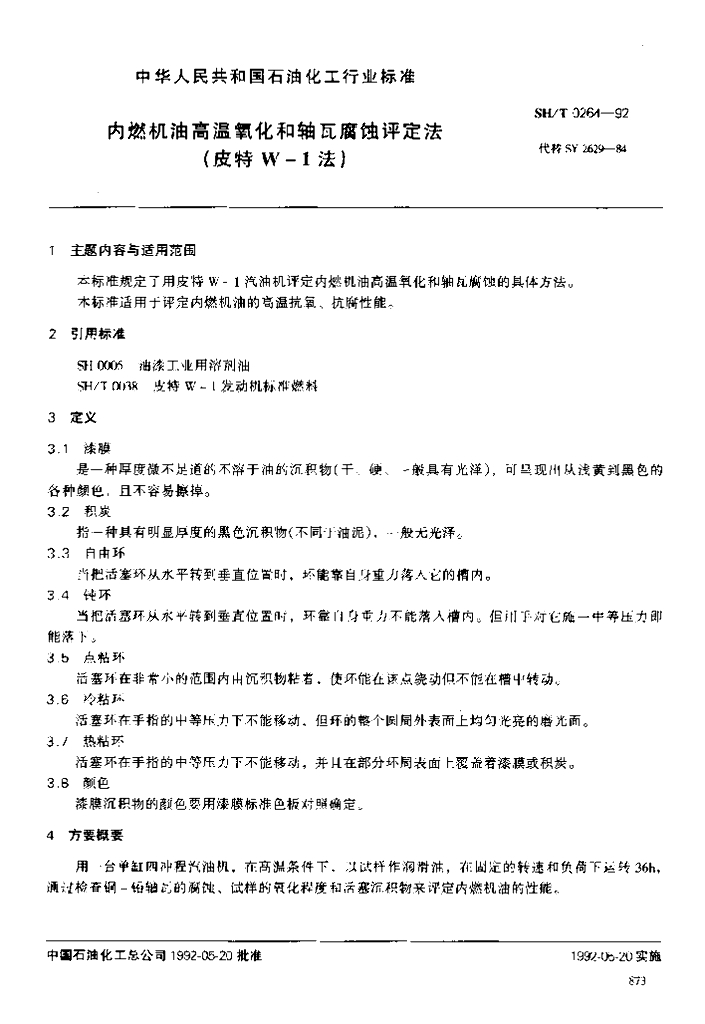 SH/T 0264-1992 内燃机油高温氧化和轴瓦腐蚀评定法(皮特W-1法)
