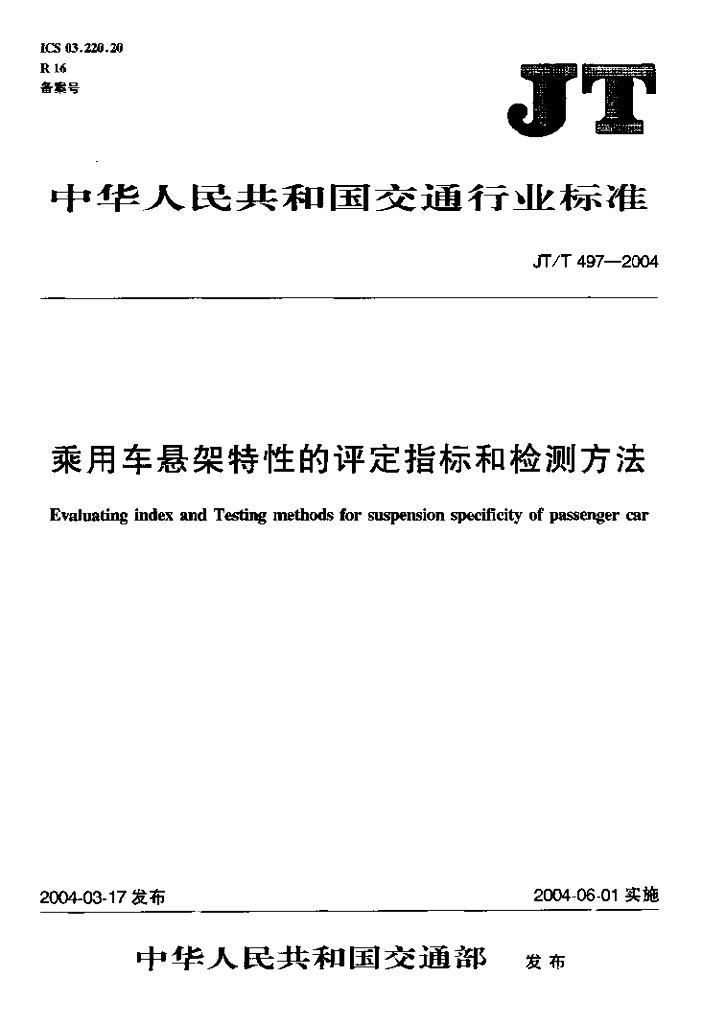 JT/T 497-2004 乘用车悬架特性的评定指标和检测方法