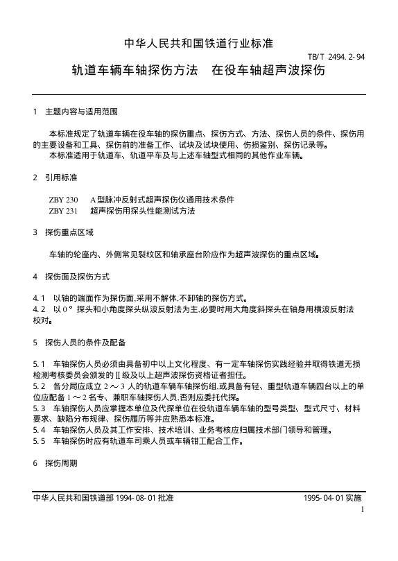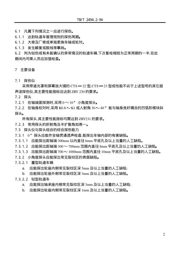 TB/T 2494.2-1994 轨道车辆车轴探伤方法 在役车轴超声波探伤