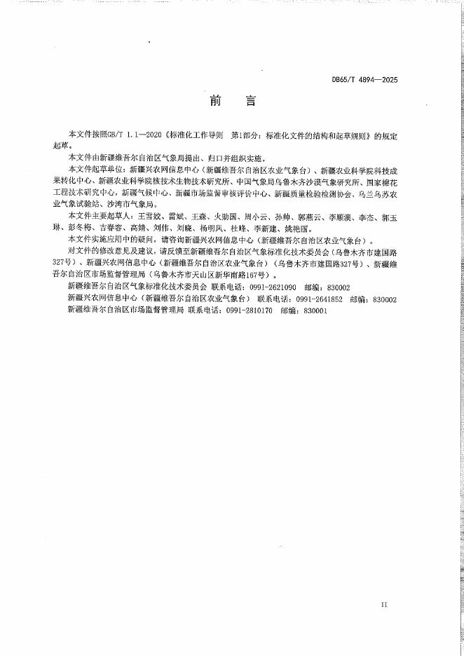 DB65/T 4894-2025 棉花苗期低温冷害等级