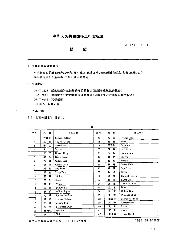 QB 1336-1991 蜡笔