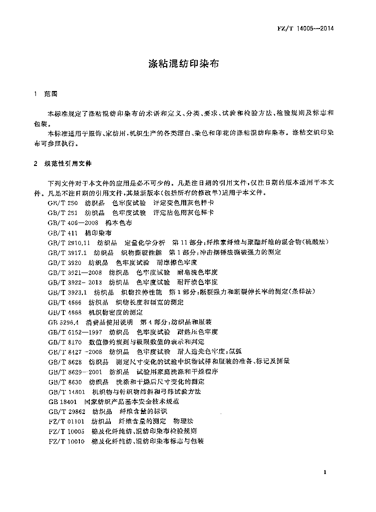 FZ/T 14005-2014 涤粘混纺印染布