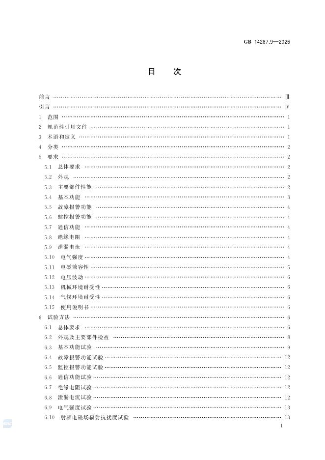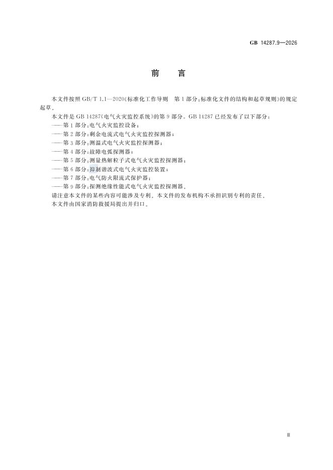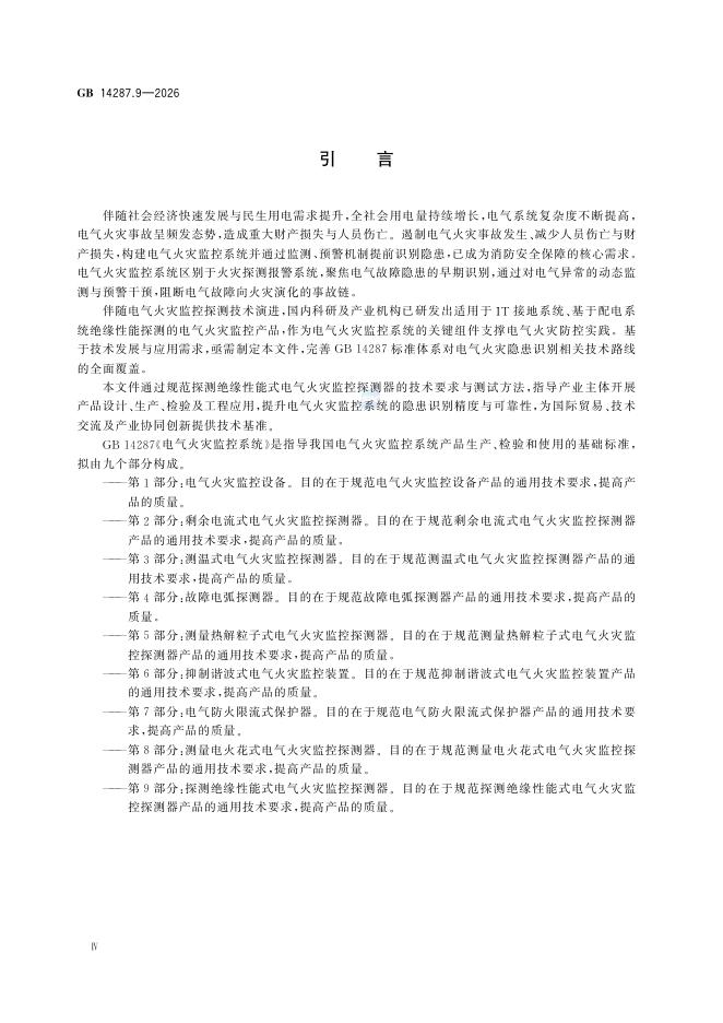 GB 14287.9-2026 电气火灾监控系统 第9部分:探测绝缘性能式电气火灾监控探测器