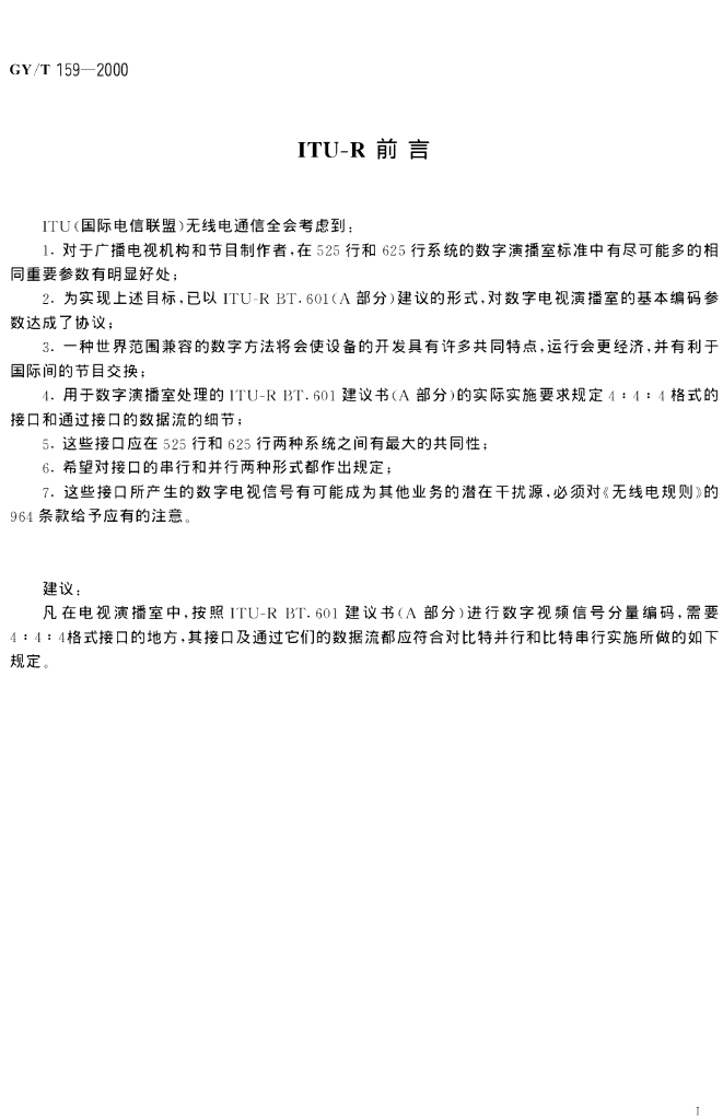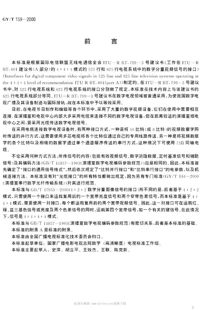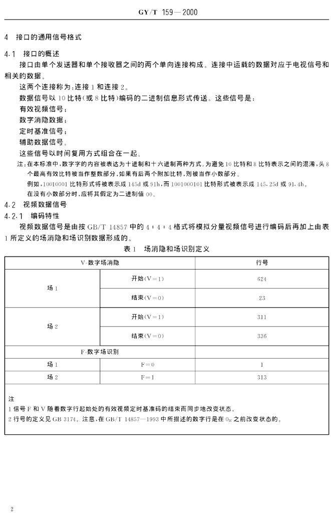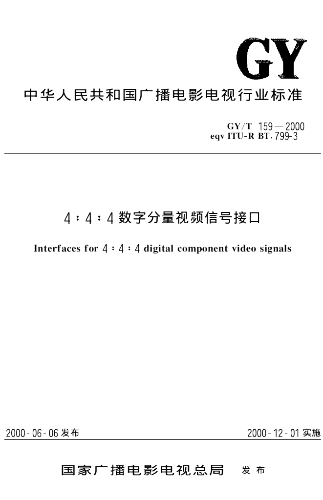 GY/T 159-2000 4 : 4: 4数字分量视频信号接口