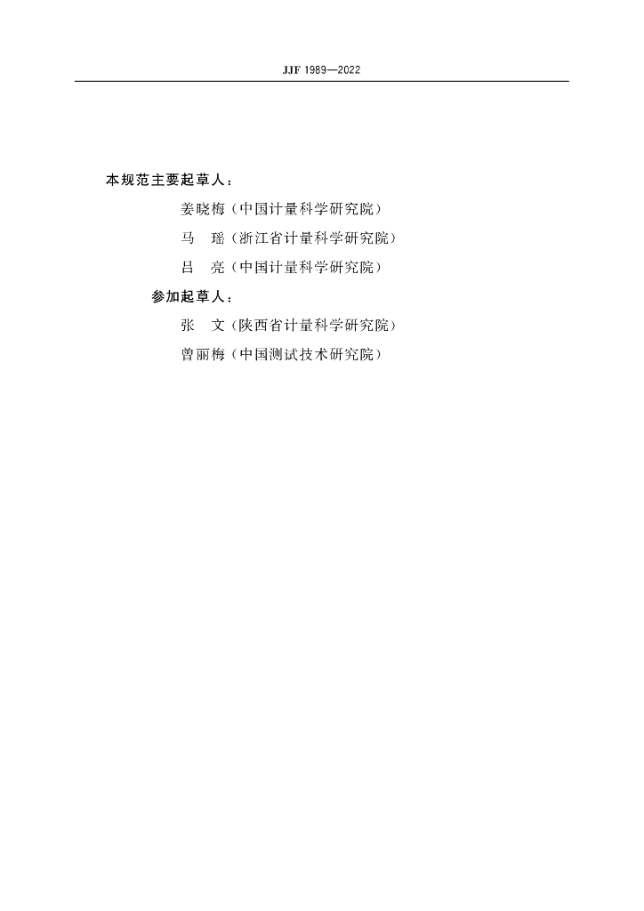姜晓梅(中国计量科学研究院)、马瑶(浙江省计量科学研究院)、吕亮(中国计量科学研究院)、张文(陕西省计量科学研究院)、曾丽梅(中国测试技术研究院)