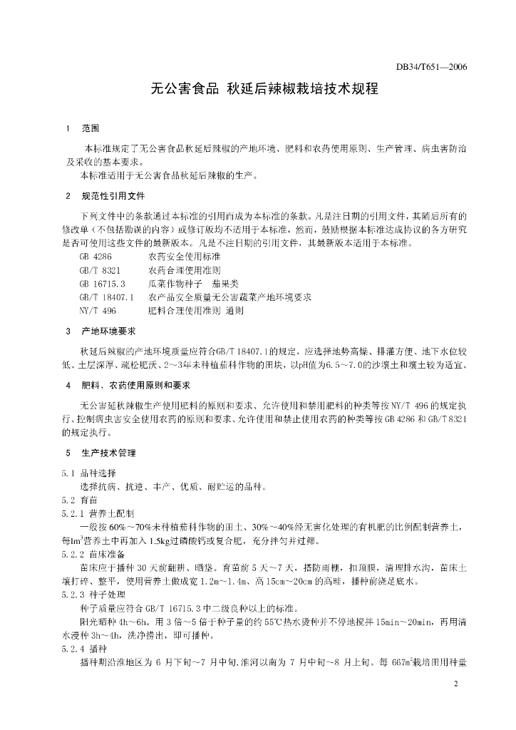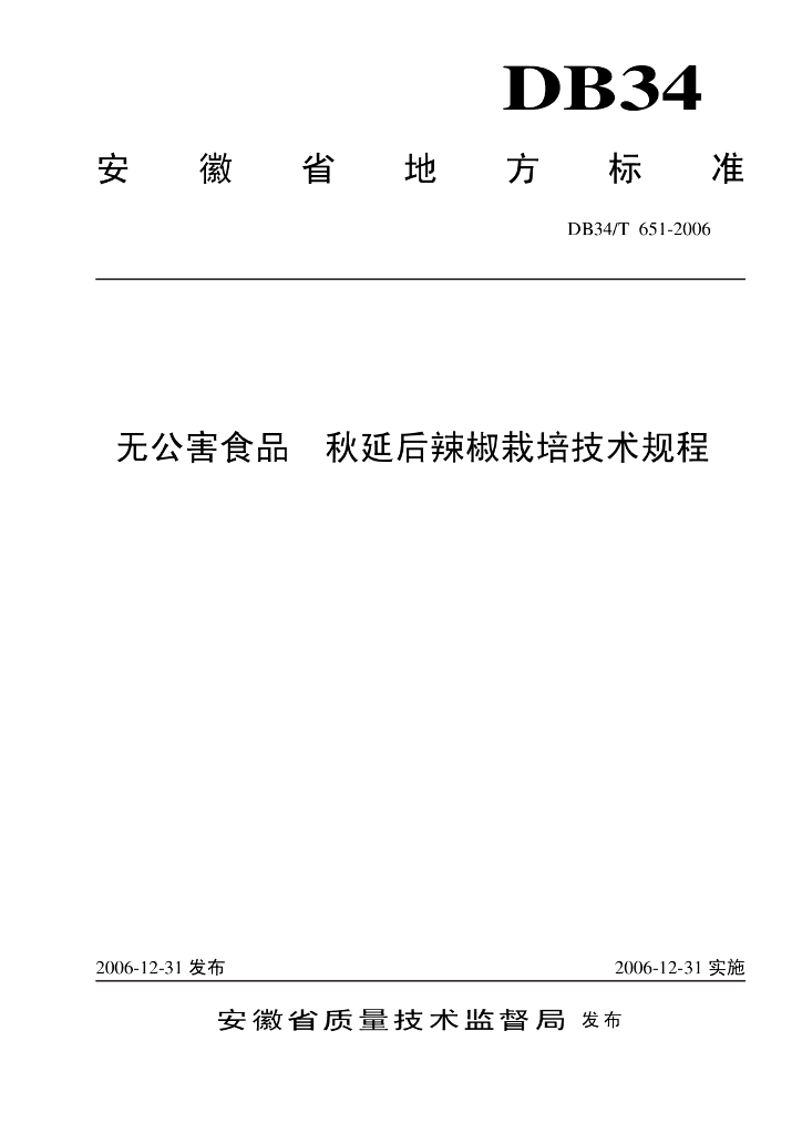 DB34/T 651-2006 无公害食品 秋延后辣椒栽培技术规程