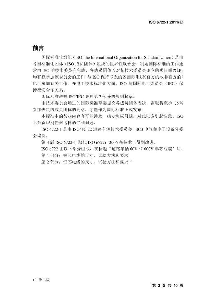 ISO 6722-1:2011 道路车辆60V和600V单芯电缆 第1部分 铜导体电缆的尺寸、试验方法和要求