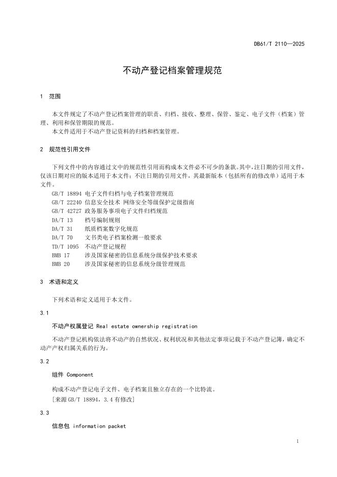DB61/T 2110-2025 不动产登记档案管理规范