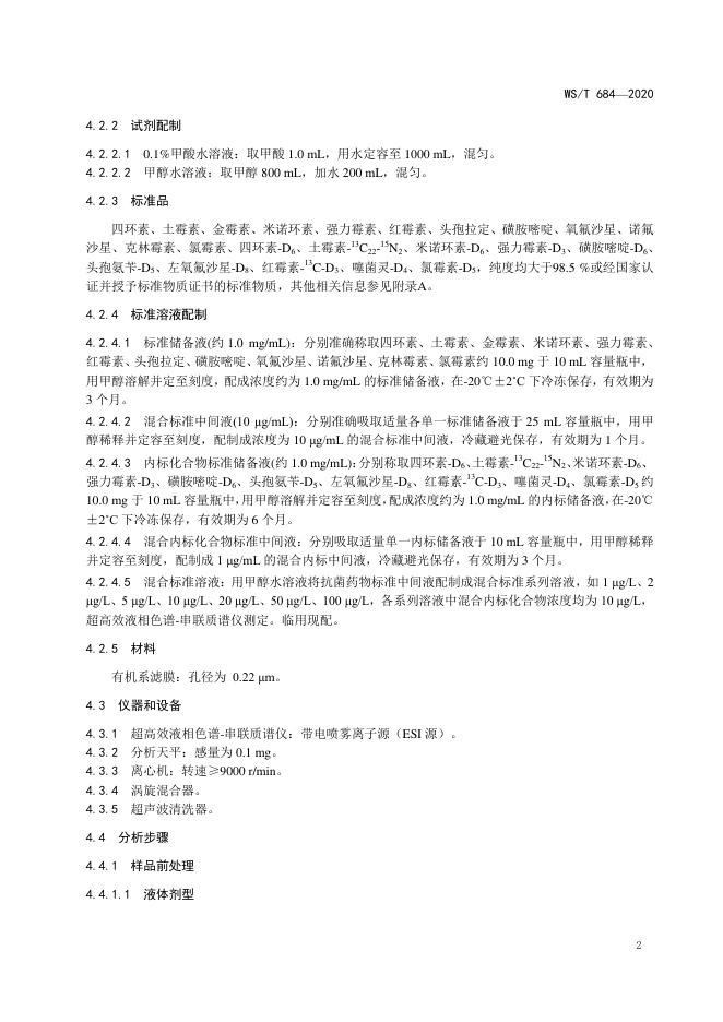 WS/T 684-2020 消毒剂与抗抑菌剂中抗菌药物检测方法与评价要求