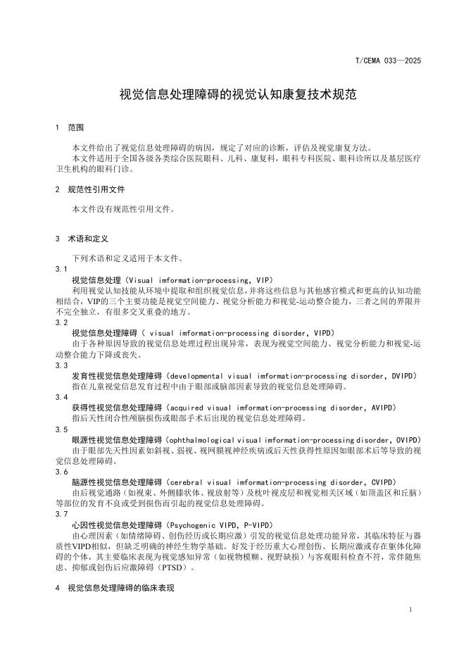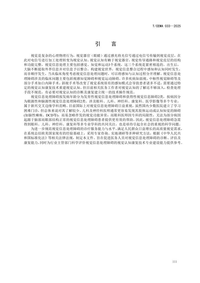 T/CEMA 033-2025 视觉信息处理障碍的视觉认知康复技术规范
