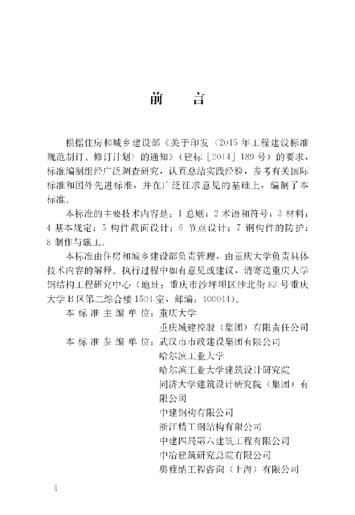 重庆大学、重庆城建控投(集团)有限责任公司、武汉市市政建设集团有限公司、哈尔滨工业大学、哈尔滨工业大学建筑设计研究院、同济大学建筑设计研究院(集团)有限公司、中建钢构有限公司、浙江精工钢结构有限公司、中建四局第六建筑工程有限公司、中冶建筑研究总院有限公司、奥雅纳工程咨询(上海)有限公司、北京市建筑设计研究院有限公司、华东建筑设计研究院有限公司、林同棪国际工程咨询有限公司、清华大学、深圳大学建筑设计研究院、深圳市桥博设计研究院有限公司、深圳市市政设计研究院有限公司、悉地国际设计顾问有限公司、中国建筑设计院有
