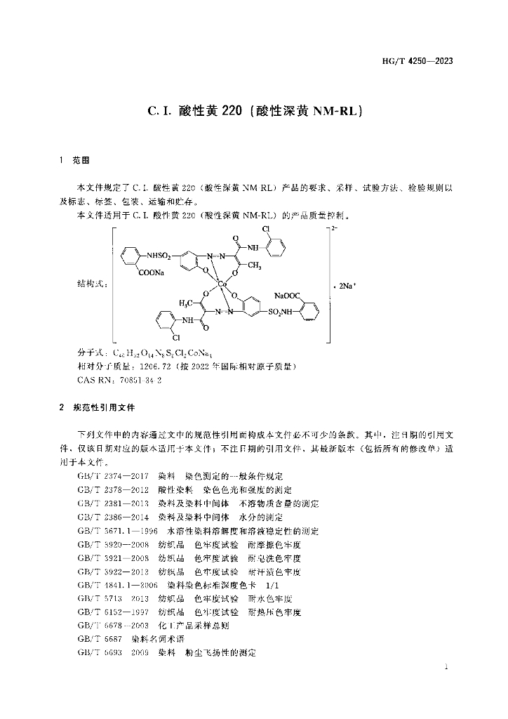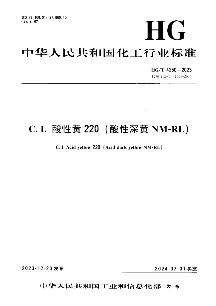 HG/T 4250-2023 C.I.酸性黄220(酸性深黄NM-RL)