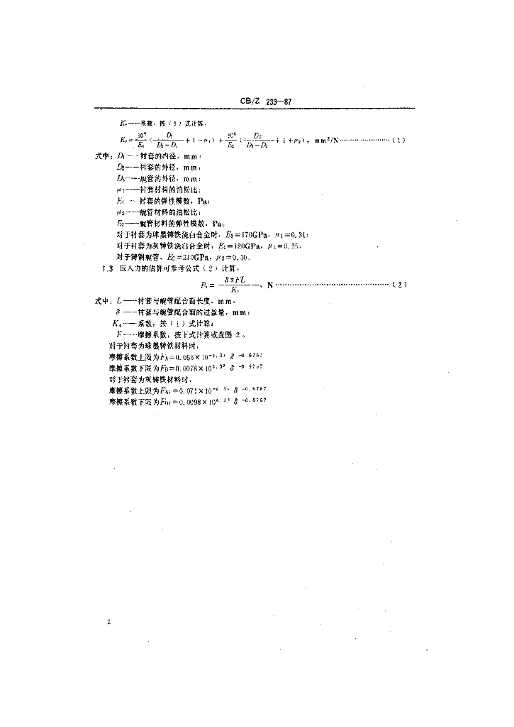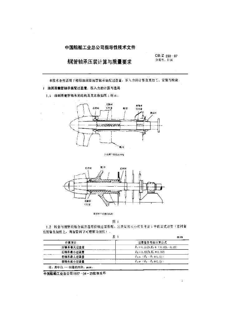 CB/Z 233-1987 艉管轴承压装计算与质量要求