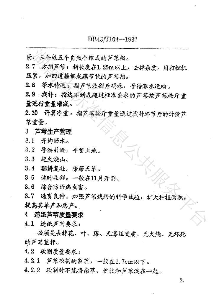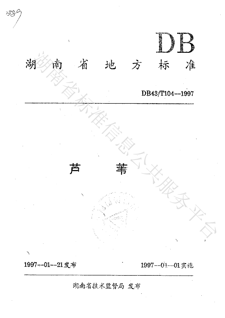 DB43/T 104-1997 芦苇