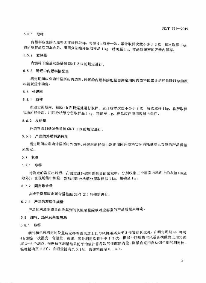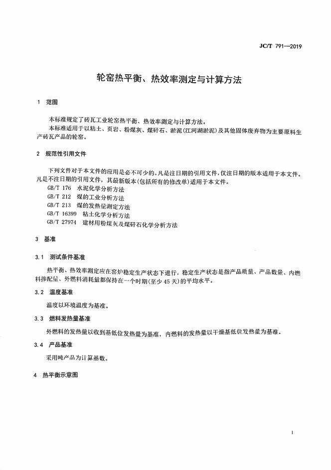 JC/T 791-2019 轮窑热平衡、热效率测定与计算方法
