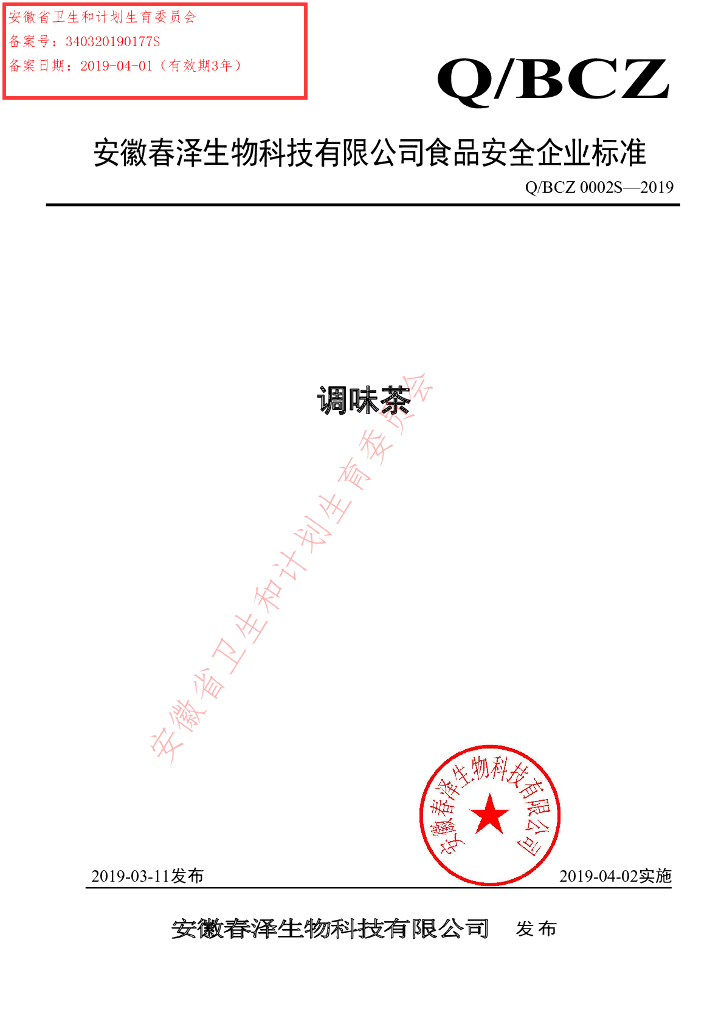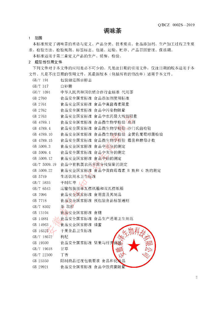 Q/BCZ 0002S-2019 调味茶